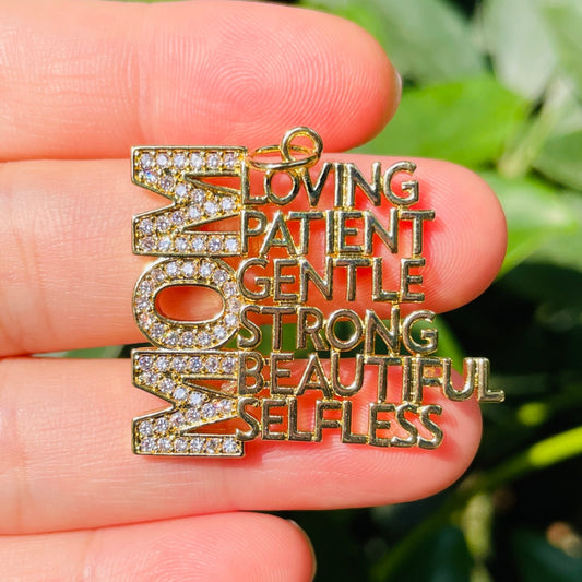 10pcs/lot CZ Pave Mom is Loving Patient Gentle Strong Beautiful Selfless Word Charms-Mother's Day