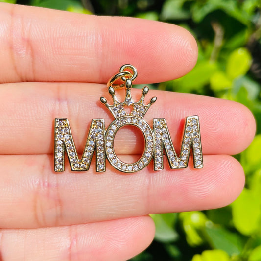10pcs/lot 32*23.6mm CZ Pave Crown Mom Word Charms