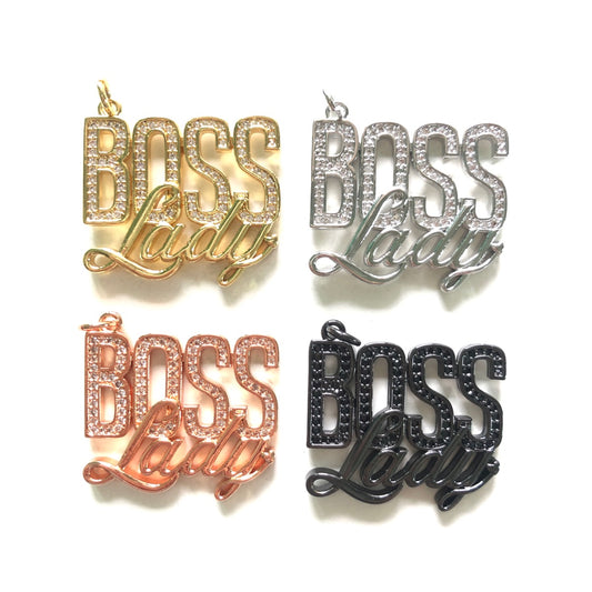 10pcs/lot 31*27.5mm CZ Pave Boss Lady Word Charms