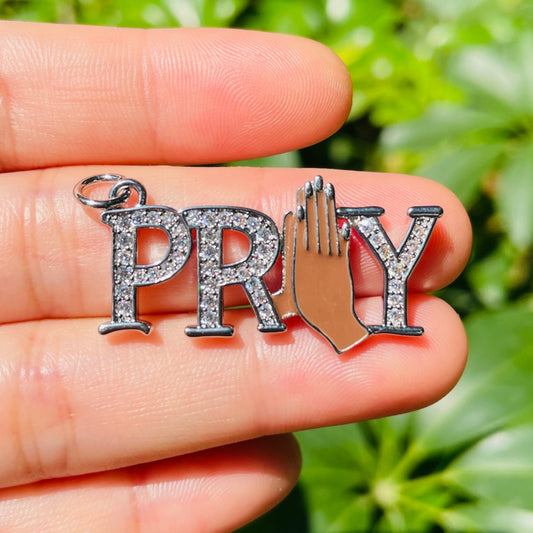 10pcs/lot 35*18mm CZ Pave Praying Hands Pray Word Charms
