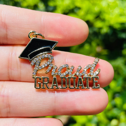 10pcs/lot 34.5*24.5mm CZ Pave Proud Graduate Word Charms for Graduation