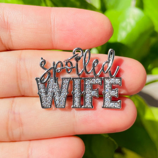 10pcs/lot CZ Paved Spoiled Wife Word Charms Pendants