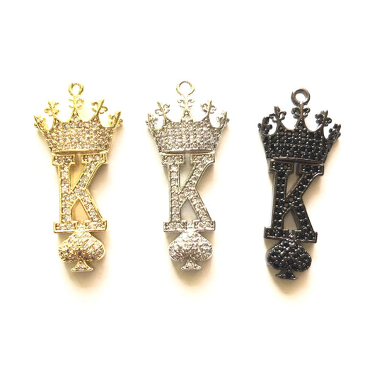 10pcs/lot 34*15mm CZ Paved King of Spades Charms