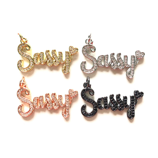 10pcs/lot 34*19mm CZ Paved Sassy Word Charms