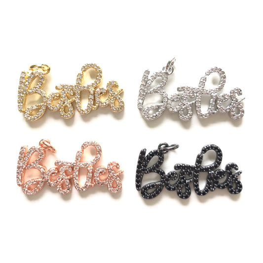 10pcs/lot 34*17.7mm CZ Pave Best Friends Besties Word Charms