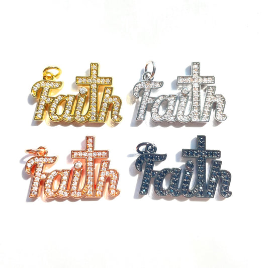 10pcs/lot 30*19.5mm CZ Paved Cross Faith Word Charms