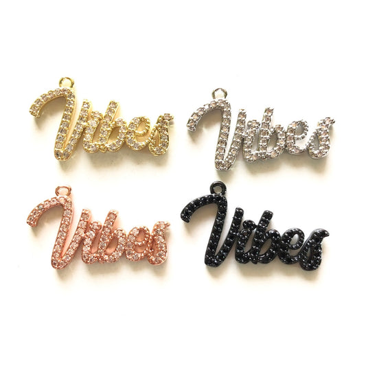 10pcs/lot 32.5*19mm CZ Paved Vibes Word Charms