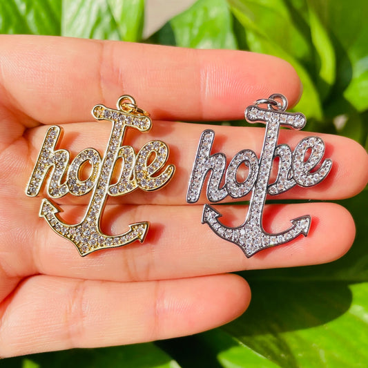 10pcs/lot 33*27mm CZ Paved Hope Anchor for the Soul Word Charms