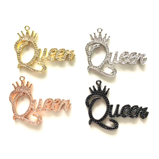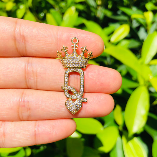 10pcs/lot 39*30mm CZ Paved Crown Queen Word Charms