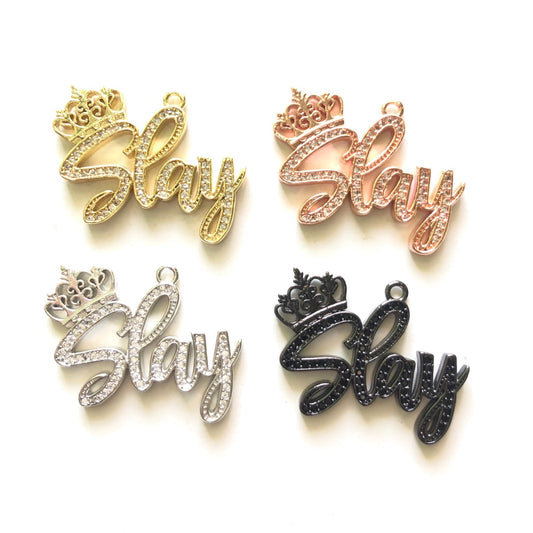 10pcs/lot 32*24mm CZ Paved Crown Slay Letter Charms