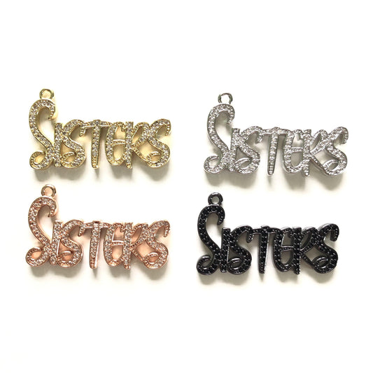 10pcs/lot 34.5*20mm CZ Paved Sisters Charms