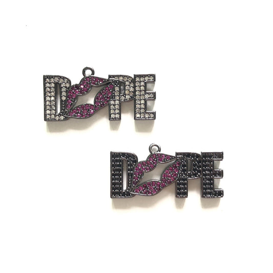 10pcs/lot 30.5*15mm CZ Paved Lip Dope Word Charms