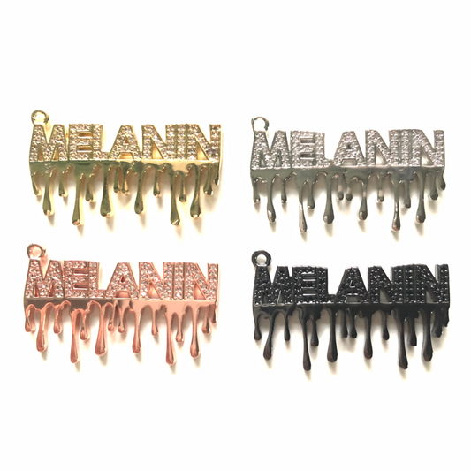 10pcs/lot 40.5*21.5mm CZ Pave Drippin Melanin Word Charms