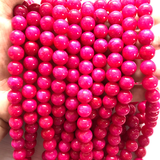 2 Strands/lot 10mm Hot Pink Fuchsia Jade Round Stone Beads