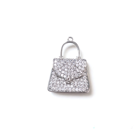 10pcs/lot 28*20.6mm CZ Paved Fleur De Lis Purse/Handbag Saints Charms