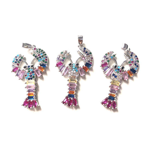 10pcs/lot 37*19mm CZ Paved Crawfish/Crayfish Lobster Charms