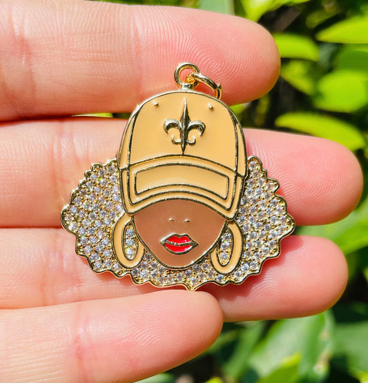 10pcs/lot 34*33mm CZ Paved Afro Black Who Dat Girl Saints Charms