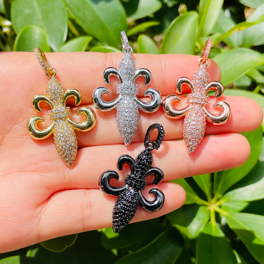 10pcs/lot 38*22.5mm CZ Paved Fleur De Lis Saints Charms