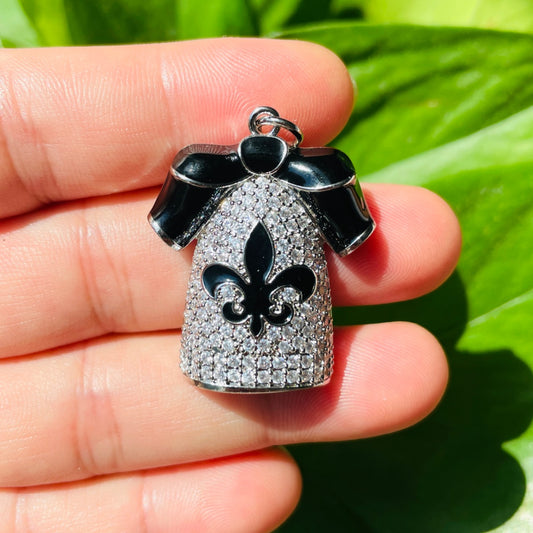 10pcs/lot 29*26mm CZ Pave NOLA Fleur De Lis New Orleans Saints Charms