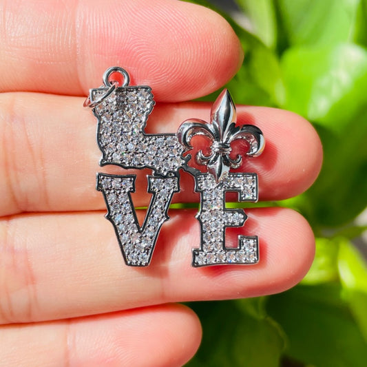 10pcs/lot CZ Pave Love Louisiana Fleur De Lis Word Charms