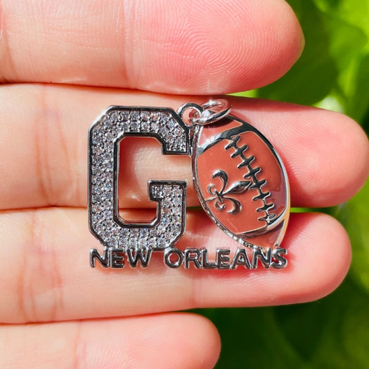10pcs/lot CZ Pave GO Saints New Orleans AmerIcan Football Word Charms