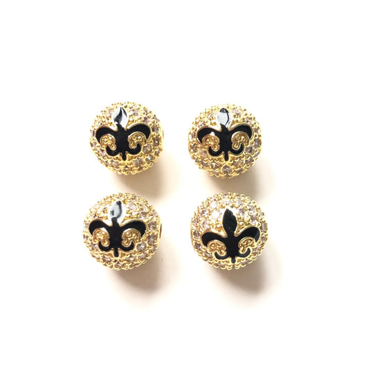 10-20-50pcs/lot 10mm CZ Paved Fleur De Lis Saints Ball Spacers Beads