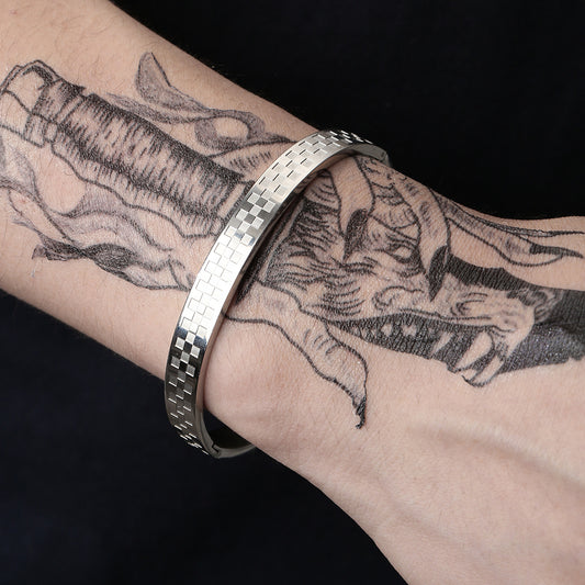 5pcs/lot Block Pattern Stainless Steel Bangle for Men