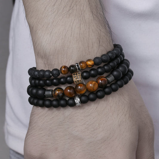 5 Sets/lot 6/8mm Tiger Eye Black Matte Stone Lava Stone Bracelets Set for Men
