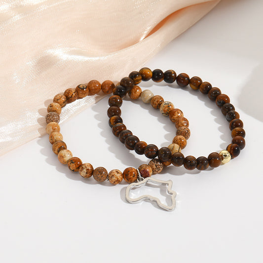 5 Sets/Lot 8m Africa Map Brown Tiger Eye Map Stone Bracelets Sets for Men