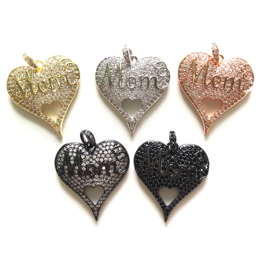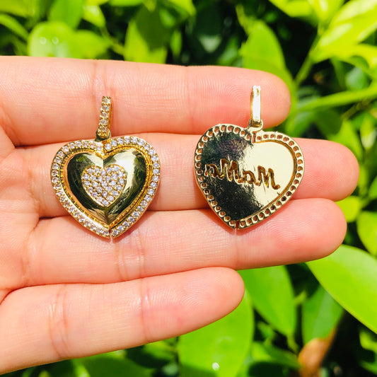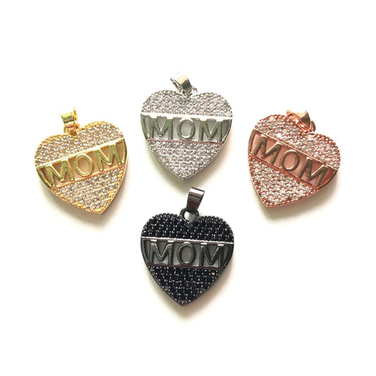 10pcs/lot 26*24.5mm CZ Paved Love Mom Heart Charms for Mother's Day