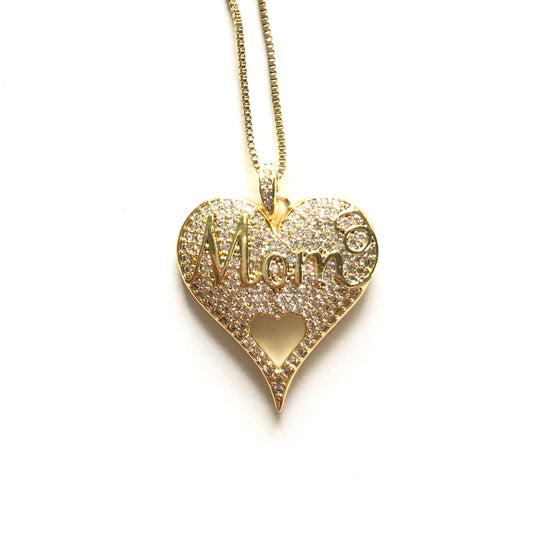 5pcs/lot 27*22mm CZ Paved Mom in Heart Necklaces