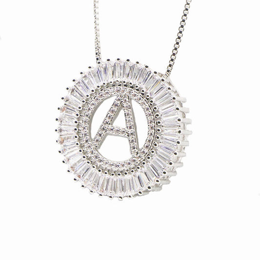 10pcs/lot CZ Paved Big Initial Alphabet Necklace-Silver
