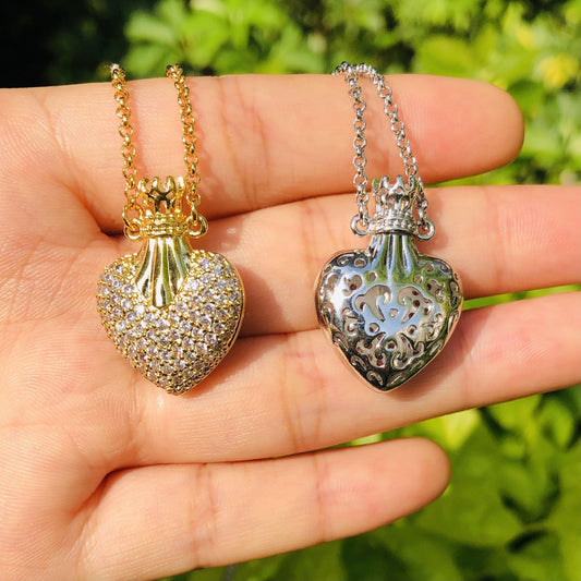 5pcs/lot 36.5*16mm CZ Paved Queen of Heart Necklace