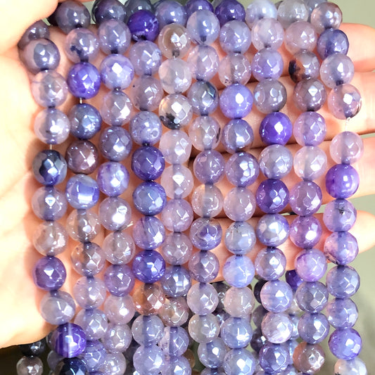 2 Strands/lot 8mm Electroplated Purple Agate Faceted Stone Beads