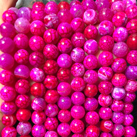 2 Strands/lot 12mm Fuchsia Cracked Fire Agate Round Stone Beads