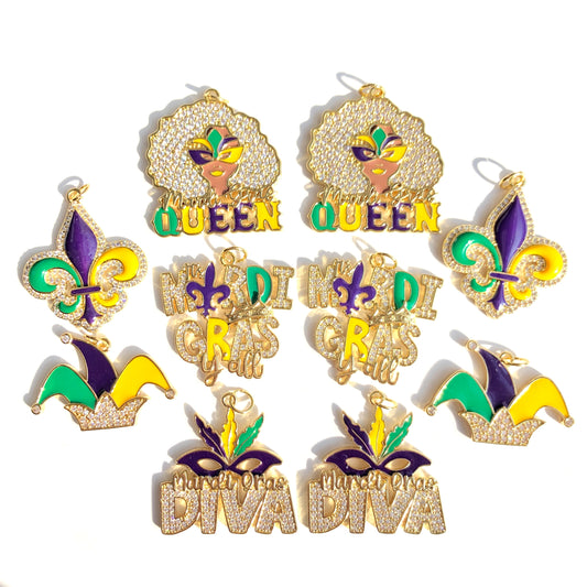 10pcs/lot CZ Paved Mardi Gras Charms Bundle