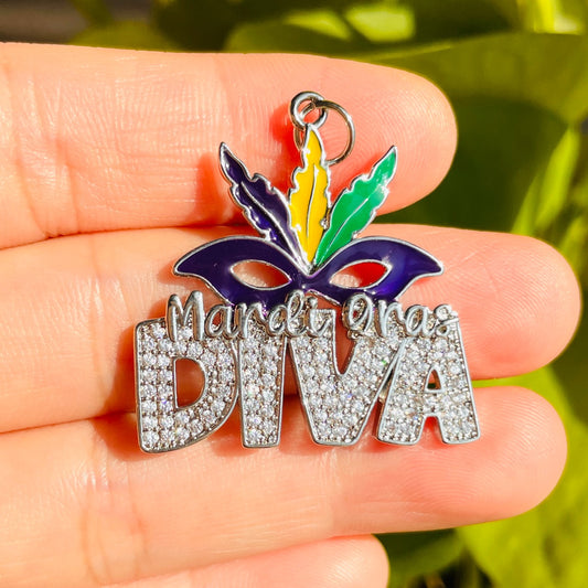 10pcs/lot CZ Paved Mardi Gras Diva Word Charm Pendants
