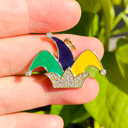 10pcs/lot CZ Paved Mardi Gras Joker Hat Charm Pendants