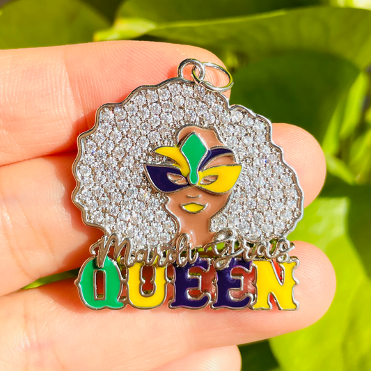 10pcs/lot CZ Paved Afro Black Girl Masked Queen of Mardi Gras Charm Pendants