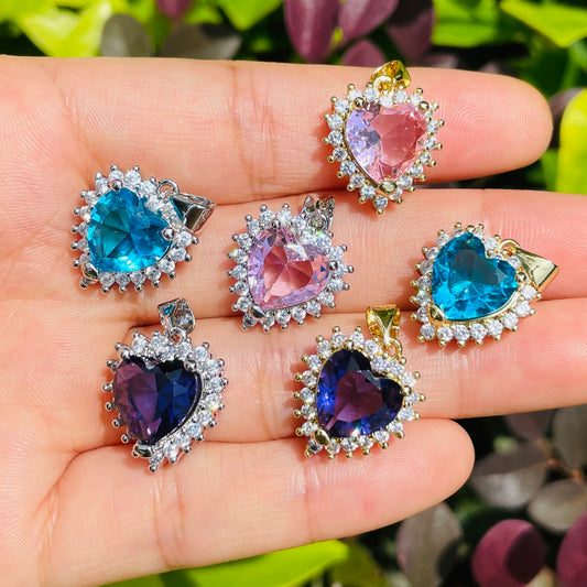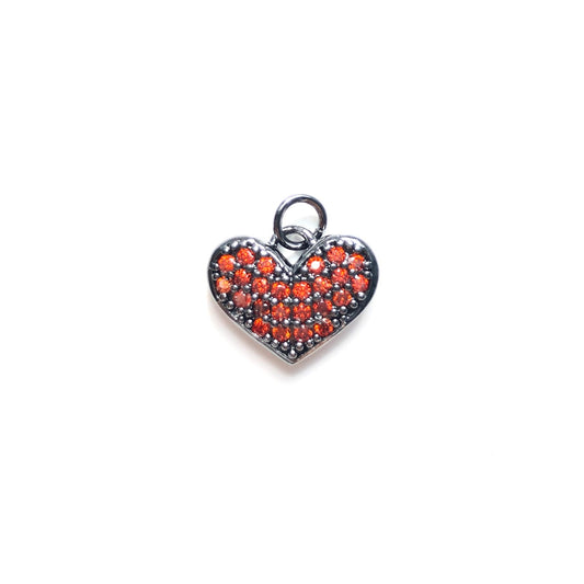 10pcs/lot 18*16mm Purple Pink Blue Red Black CZ Paved Heart Charms