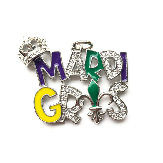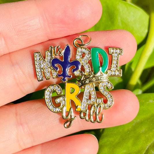 10pcs/lot CZ Paved It's Mardi Gras to Y'all Word Charm Pendants