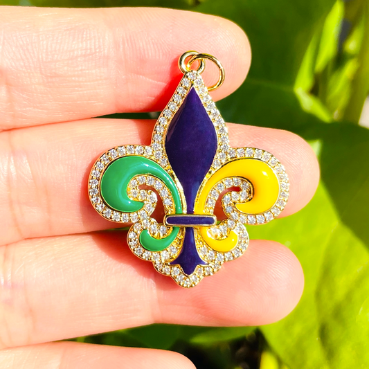 10pcs/lot CZ Paved Mardi Gras Fleur De Lis Charm Pendants