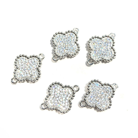 10pcs/lot Gold Silver Plated CZ Paved Clover Connector