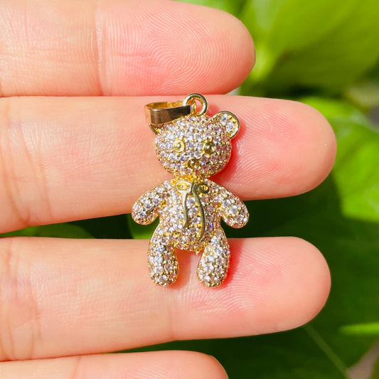 5-10pcs/lot 32*16mm CZ Paved Cute Bear Charms