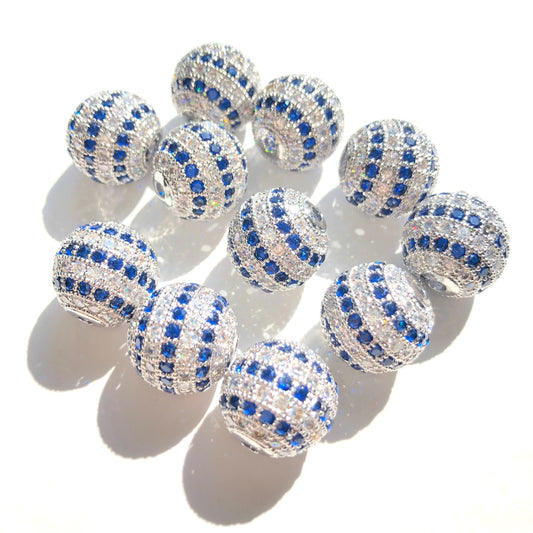 10pcs/lot 10-12-14mm Clear Blue CZ Paved Ball Beads Spacers