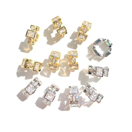 10-20-50pcs/lot 11.6*7.2mm Rectangle CZ Paved Big Hole Wheel Spacers