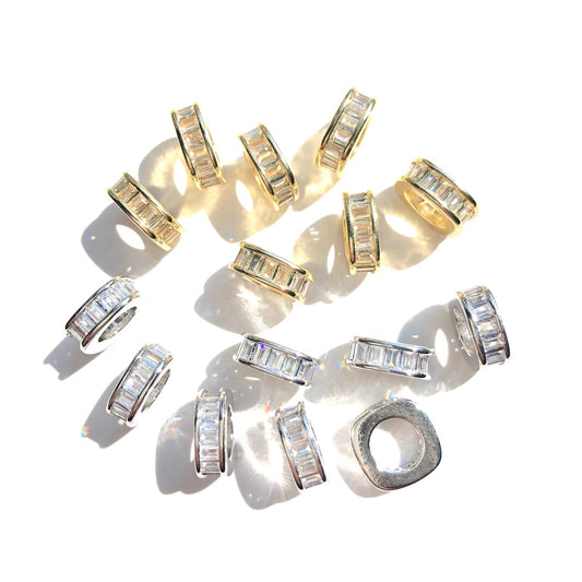 10-20-50pcs/lot 10.4*4.8mm Rectangle CZ Paved Big Hole Wheel Spacers
