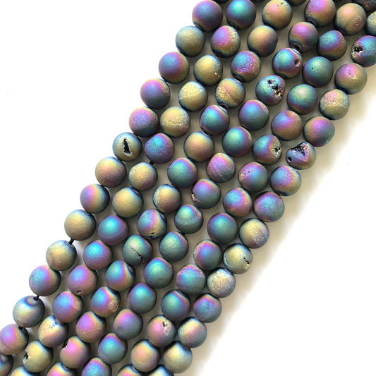 2 Strands/lot 10mm Matte Rainbow Druzy Agate Round Beads