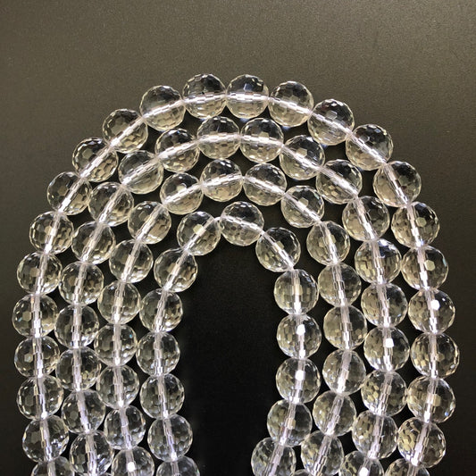 2 Strands/lot 10mm, 12mm Faceted White Crystal Clear Quartz Beads for Jewelry Making