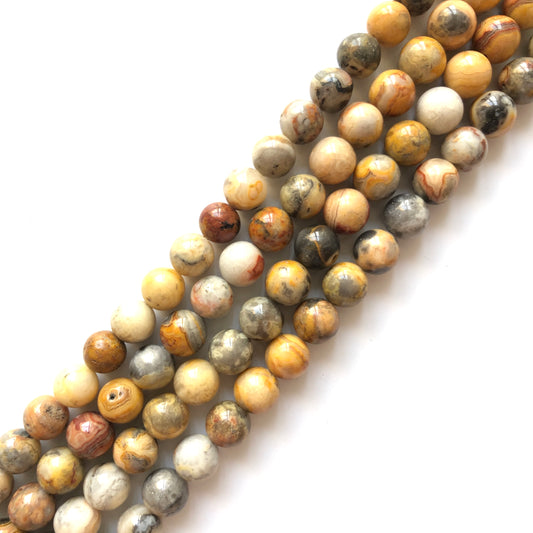 2 Strands/lot 10mm Round Yellow Crazy Agate Stone Beads
